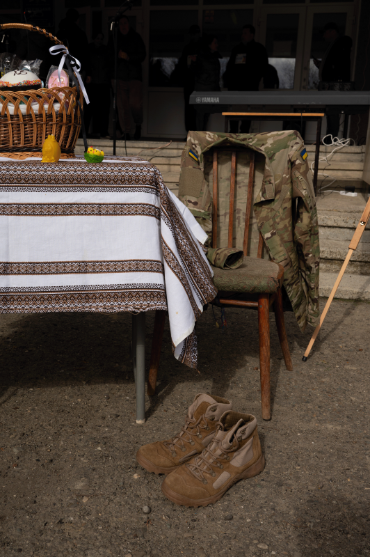 Берці, військовий кітель та великодній стіл, Стецева на Івано-Франківщині, 7 квітня 2026 року. Альона Стефаник