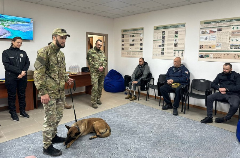 "До каністерапевтичних занять залучають собак, які мають спокійний характер і звикли до спілкування з людьми", — цитують у дописі керівника Кінологічного центру Андрія Лібрика.