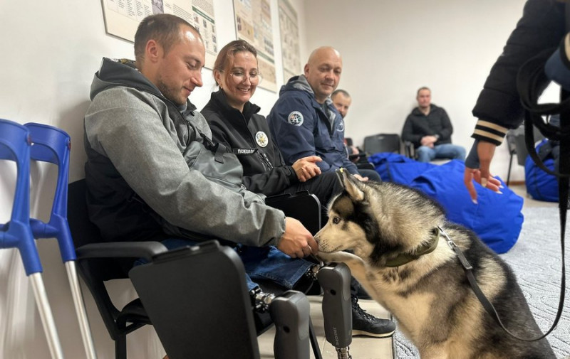 Сеанс каністерапії для поранених поліцейських і військових, Франківщина. Facebook/Поліція Івано-Франківської області