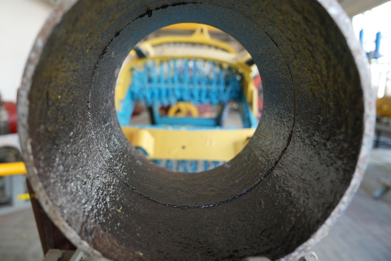Фрагмент сталевої труби, яку використовували для будівництва газопроводів у радянські часи. Нині їх будують з поліетиленових труб. Суспільне Івано-Франківськ