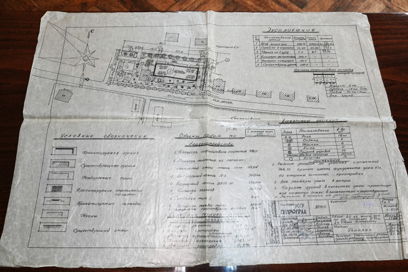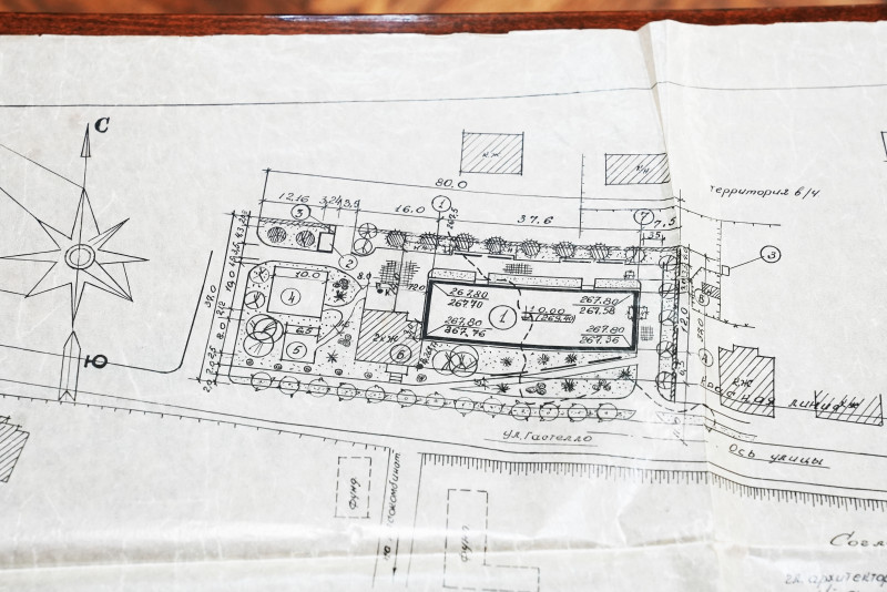 Генеральний план будинку на вулиці Гастелло, 13 А. Головна інженерка проєкту — Лукія Крип’якевич-Лукомська Архів Івано-Франківської філії науково-дослідного інституту проектування міст “Діпромісто” ім. Ю. М. Білоконя