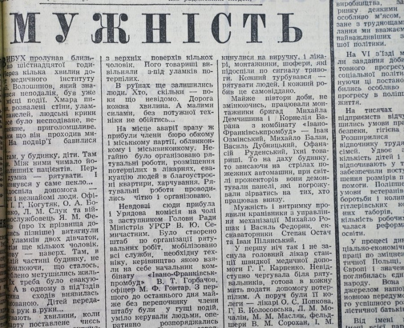 "Хмара пилу, розвалені стіни, уламки панелей, людські крики", — так опише перші миті після вибуху спецкор газети "Прикарпатська правда" Степан Дем’янчук.