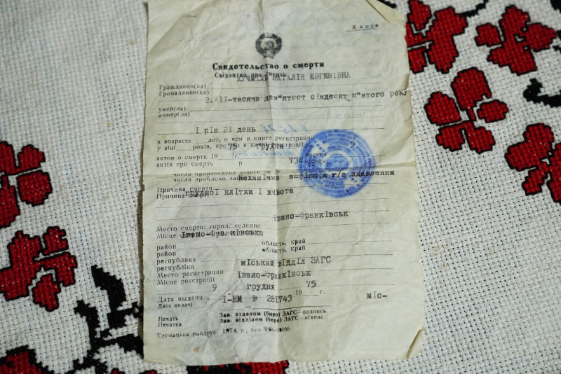 Свідоцтво про смерть Наталії Кучміль. Суспільне Івано-Франківськ