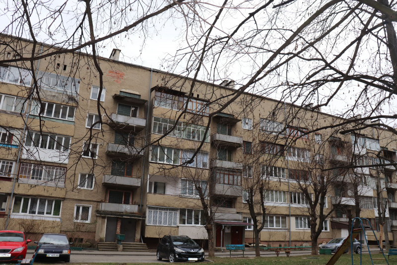 "Хрущовка", як то називають. Висячі балкони, маленькі квартири — з однієї кімнати переходилося в другу. У мене була однокімнатна квартирка — 19 квадратних метрів. Лінолеум, маленька кухонька, диван, шафа, стіл, ліжко двоспальне. Книжкова шафа, бо ми з чоловіком кохалися в літературі й збирали книжки. Він збирав по Брайлю, а я — друковані", — пригадує колишня мешканка будинку Параска Гриньків.