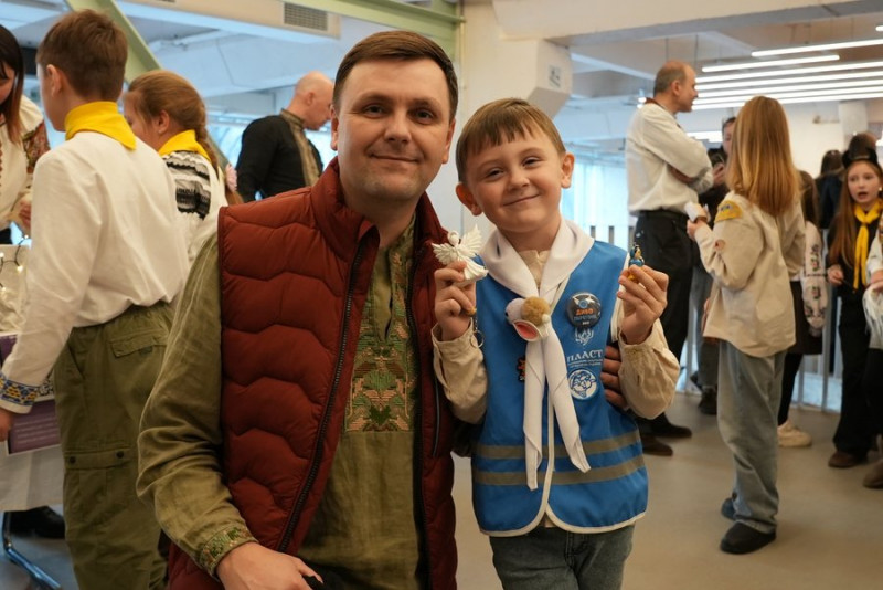 Батько пластунів Андрій Стасюк каже, що його донька принесла на ярмарок власну картину, а разом із сином вони придбали ангелика та маленькі булави.