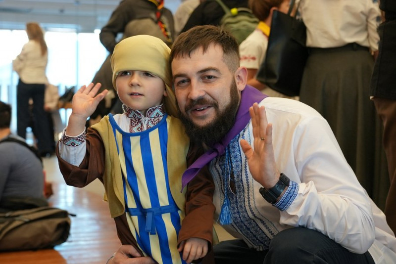 Кожен улад Івано-Франківської станиці "Пласту" представив власний вертеп. Військовослужбовець Святослав Боржковський — батько чотирирічного пластуна Марка, розповів, що його син виконує роль Йосифа.