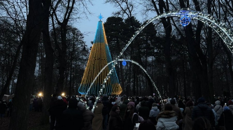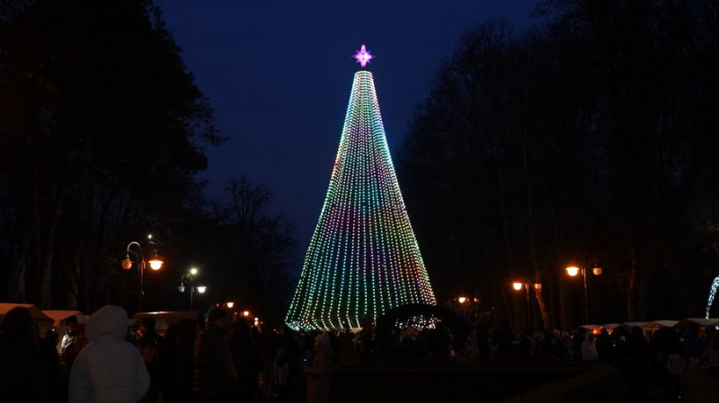 6 грудня на центральній алеї парку культури та відпочинку імені Тараса Шевченка в Івано-Франківську засвітили головну ялинку міста. На цій локації її встановлюють другий рік поспіль. Під час заходу працював ярмарок ветеранських бізнесів, на якому можна було придбати сувеніри за донат, повідомила кореспондентка Суспільного з місця події.