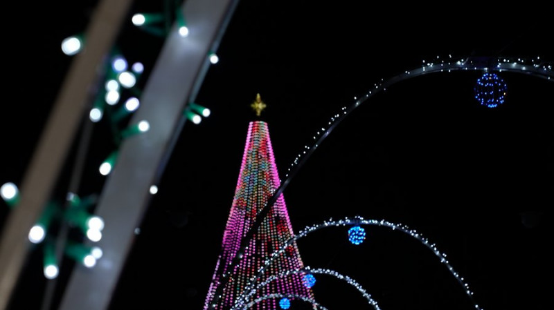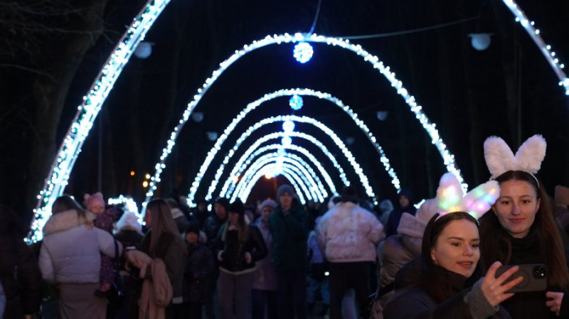 Люди йдуть через новорічні арки, Івано-Франківськ, 6 грудня 2025. Суспільне Івано-Франківськ