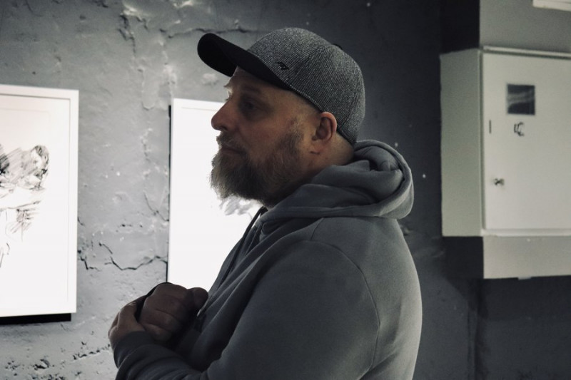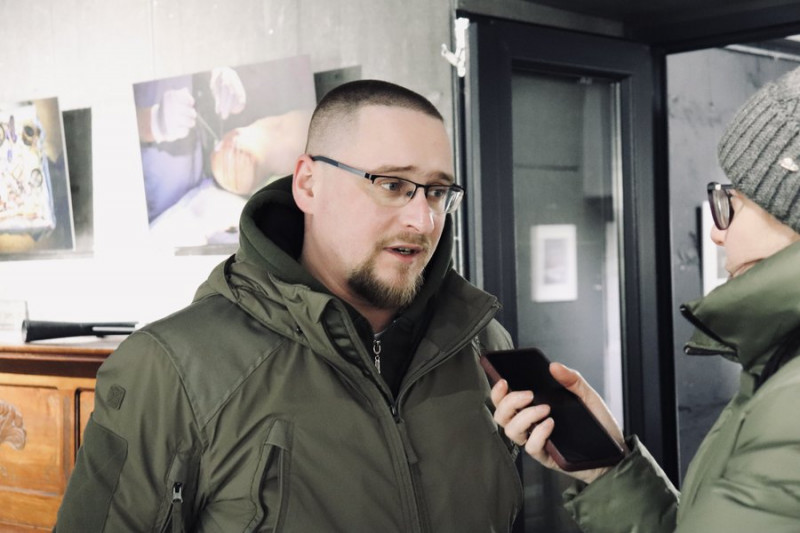 Денис Майструк працює у військовому шпиталі, тож прийшов подивитися на виставку, яку створив зокрема один з пацієнтів їхнього медзакладу.