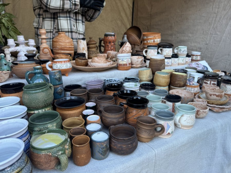 На ярмарку також представив свої вироби ветеран і художник-кераміст Віталій Владковський. Він каже: зараз намагається "виводити людей з війни", працюючи арттерапевтом у реабілітаційному центрі для військовослужбовців та родин військових "Франко-Ґражда".