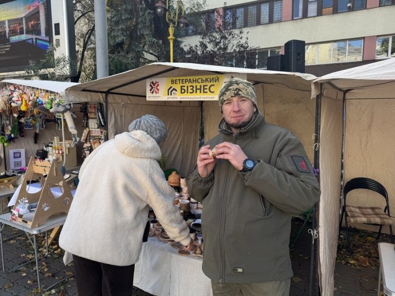 У середмісті Івано-Франківська 18-19 жовтня провели ярмарок ветеранських бізнесів. Участь у ньому взяли представники з Рівненщини, Хмельниччини, Тернопільщини, Львівщини та Прикарпаття. Вони продавали в'язані вироби, випічку, глиняний посуд, картини та книги.