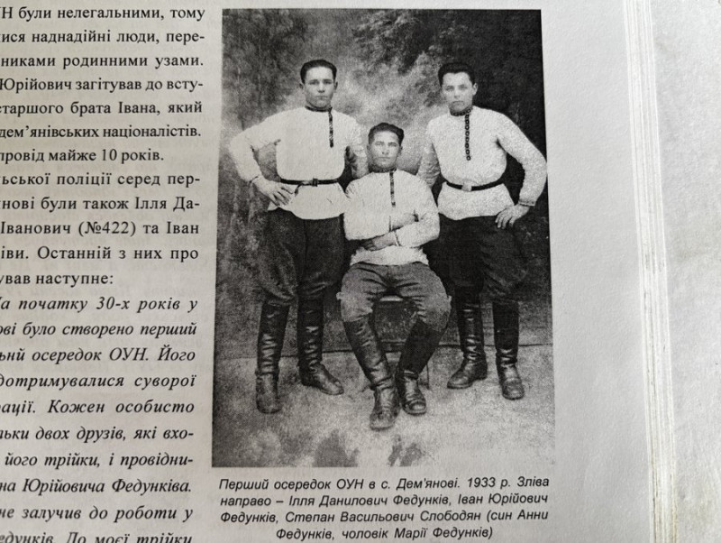 Історик розповів, що його предки — Ілля, Пилип та Іван Федунківи були одними з перших членів ОУН у Демʼянові. Чоловікові вдалося зберегти спогади Івана Федунківа про ті часи.