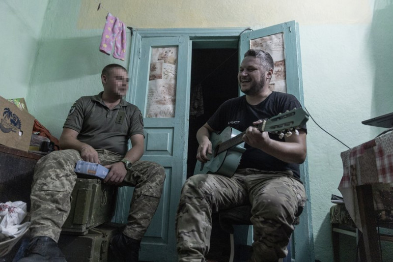Михайло Вовк грає на гітарі у зоні бойових дій. Надав Суспільному Михайло Вовк