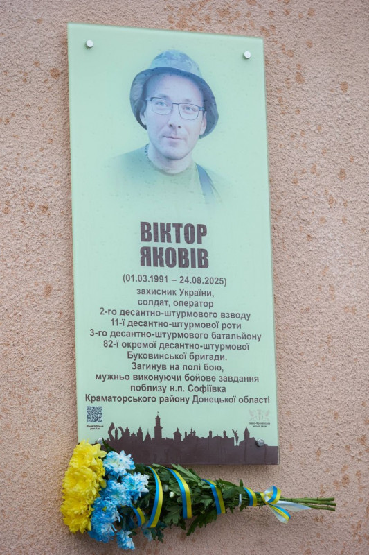Пам’ятна дошка військовослужбовцю Віктору Яковіву. Facebook/Руслан Марцінків