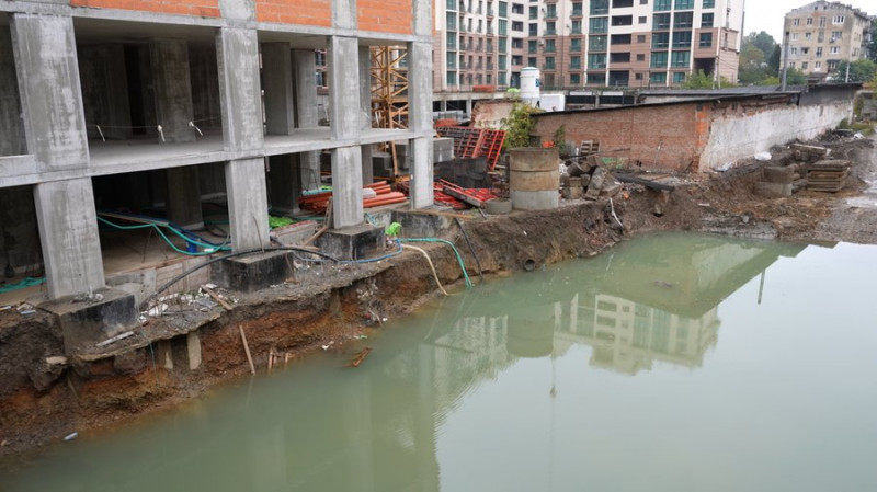 "На сьогодні нічого катастрофічного там немає, оскільки ми це вже неодноразово перевіряли й дивилися. І все там проводиться згідно з нормами. Якщо говорити про якісь котловани, риття котлованів тощо, є такі допустимі моменти, коли там підходять якісь підводні течії, трошки вилазить вода. Плюс дощ додав ще своє, тому воно виглядає збоку, ніби там якась надзвичайна ситуація", — каже представник інвестиційно-будівельної компанії "Вертикаль" Роман.