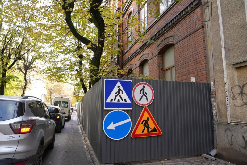 Початок зведення будівельного паркану на вулиці Гординського, 10. Світлина зроблена 9 жовтня 2025 року. Суспільне Івано-Франківськ