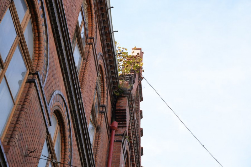 Кущ, який росте на фасаді будинку на Гординського, 10. Суспільне Івано-Франківськ/Роман Сокирко