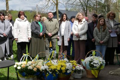 Люди принесли квіти, аби покласти до меморіальної дошки Іванові Думінкевичу, Калуш, 23 квітня 2026 року. Facebook/Калуська міська рада