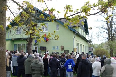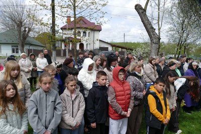 Місцеві жителі прийшли на відкриття пам’ятної дошки Іванові Думінкевичу, Калуш, 23 квітня 2026 року. Facebook/Калуська міська рада