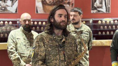 Виставку доповнили і музичним супроводом. Спеціально для неї створили альбом веснянок у сучасному звучанні, розповідає військовослужбовець і музикант Андрій Бармалій.