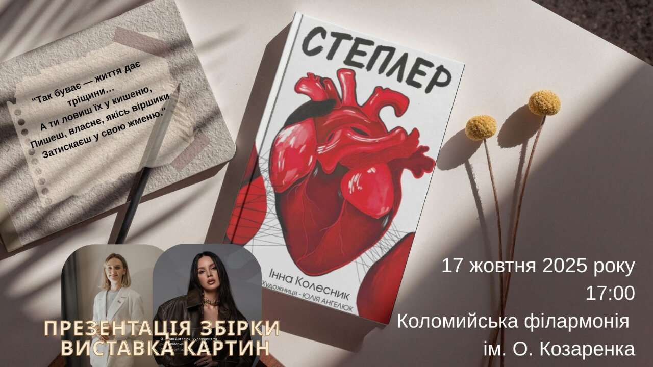 17 жовтня 2025 року о 17:00 у Коломийській філармонії ім. О. Козаренка відбудеться подія, що поєднає літературу та мистецтво. Поетеса Інна Колесник представить свою нову збірку «СТЕПЛЕР», а художниця Юлія Ангелюк – виставку картин, створених як візуальне відлуння до книги.