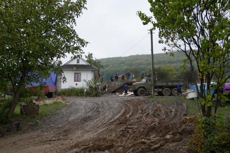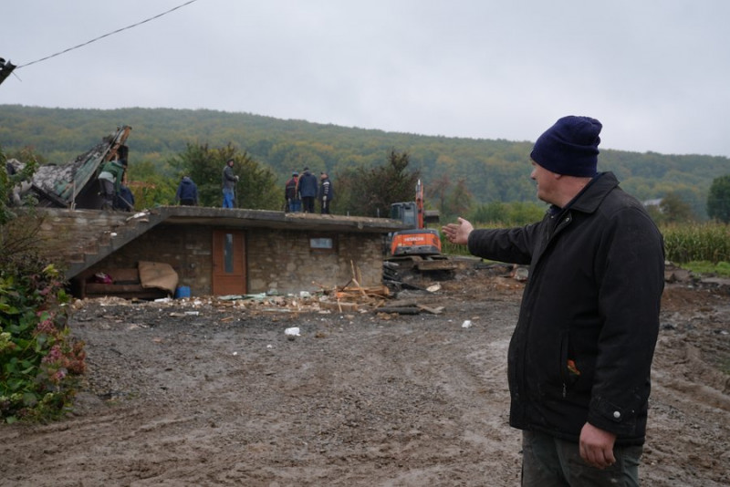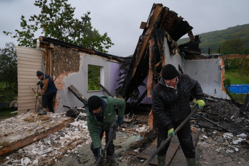 Односельці допомагають розбирати руїни оселі ветерана Романа Михайліва. Суспільне Івано-Франківськ/Роман Сокирко