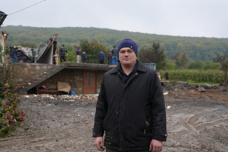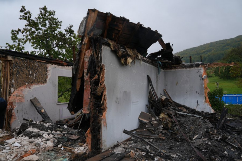 Двоповерховий будинок згорів разом з усіма набутками сім’ї. Ветеран 10 окремої гірсько-штурмової бригади "Едельвейс" Роман Михайлів із дружиною і двома дітьми тимчасово живе у сусіда та збирає гроші на відновлення дому.