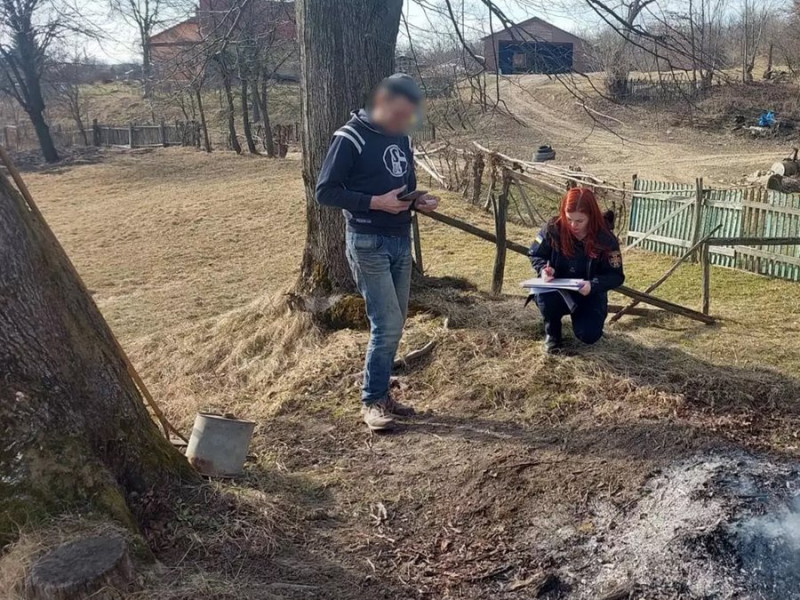 Поліцейська виписує адмінпротокол за спалювання трави, Івано-Франківщина, 10 березня 2026 року. Держслужба з надзвичайних ситуацій в Івано-Франківській області