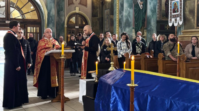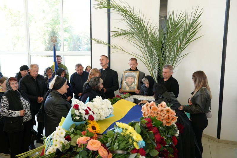 Попрощатися з бійцем до архікатедрального і митрополичого собору Воскресіння Христового УГКЦ прийшли сотні людей: рідні, побратими та друзі.