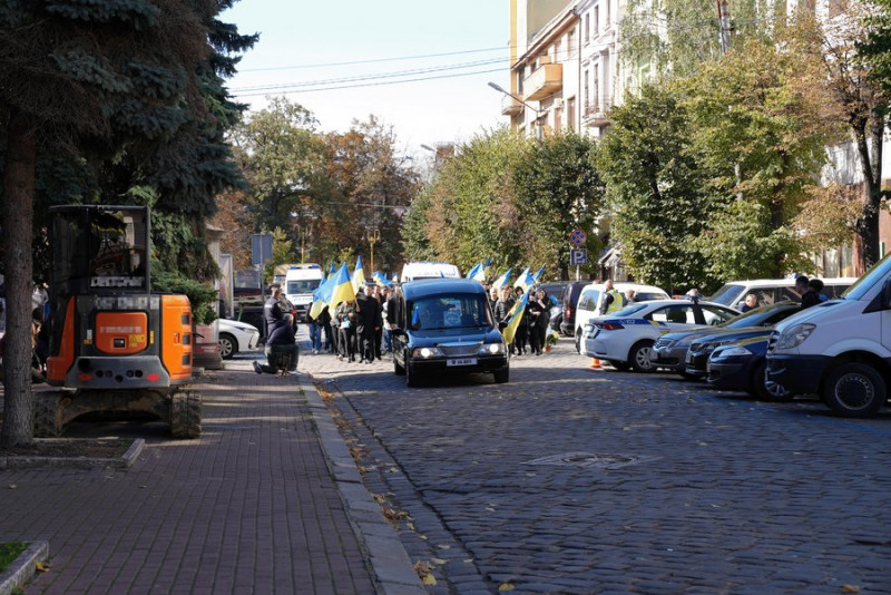 Далі кортеж із тілом спецпризначенця Тараса Шпука рушив вулицями міста до архікатедрального собору.