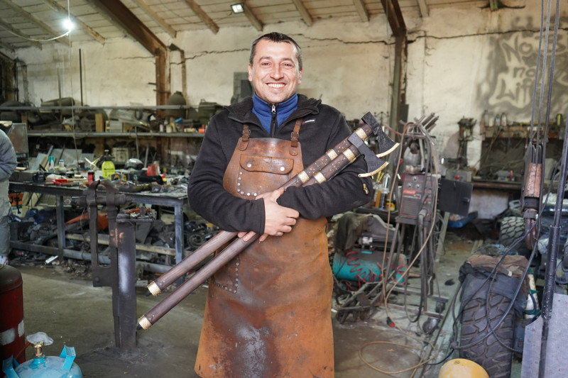 Ветеран російсько-української війни Антон Фіцич з Косова, що на Франківщині, виготовляє гуцульські бартки, шаблі в стилі доби Козаччини та мечі часів РусіПеріод існування Київської Русі, середньовічної східноєвропейської держави з центром у Києві, що тривав приблизно з IX до середини XIII століття (до монгольської навали), період розквіту української державності, культури та християнства, відомий як доба Володимира Великого та Ярослава Мудрого. До повномасштабного вторгнення коваль робив паркани, ліхтарі та лавки. З березня 2022 року він воював у складі 10 окремої гірсько-штурмової бригади "Едельвейс". Після поранення повернувся з фронту, почав займатися тим, про що мріяв з дитинства — зброярством.