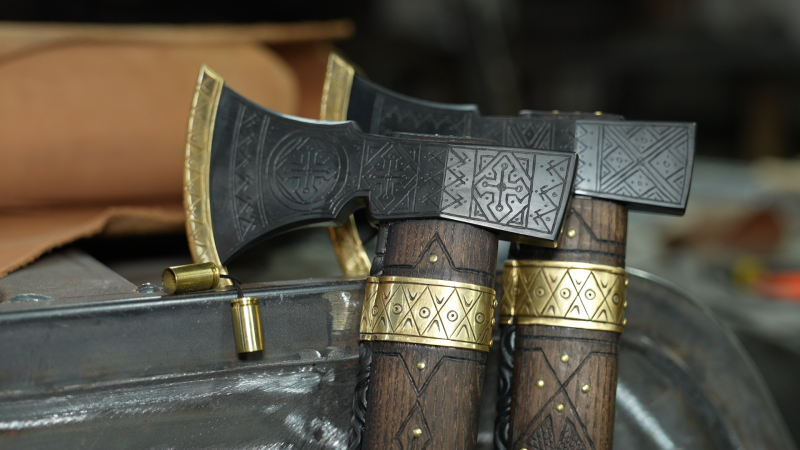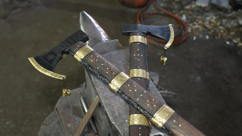 На виготовлення однієї бартки коваль витрачає один тиждень, а меча — приблизно три-чотири. Свої вироби майстер декорує сам.